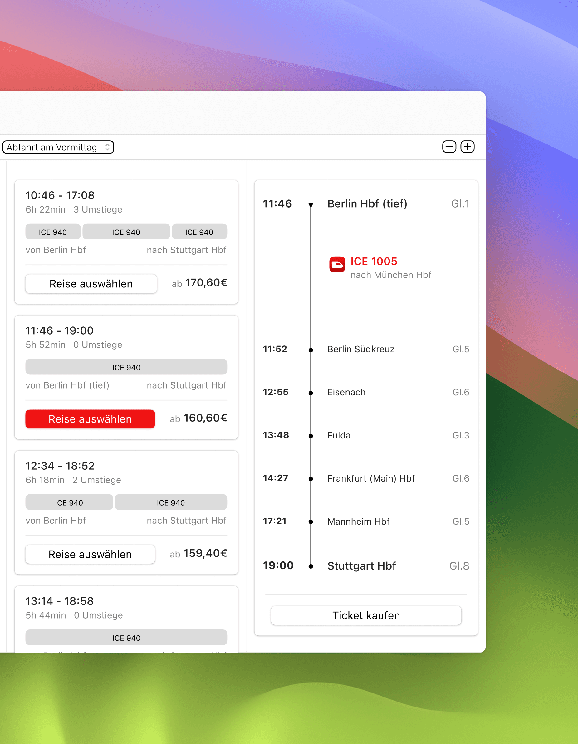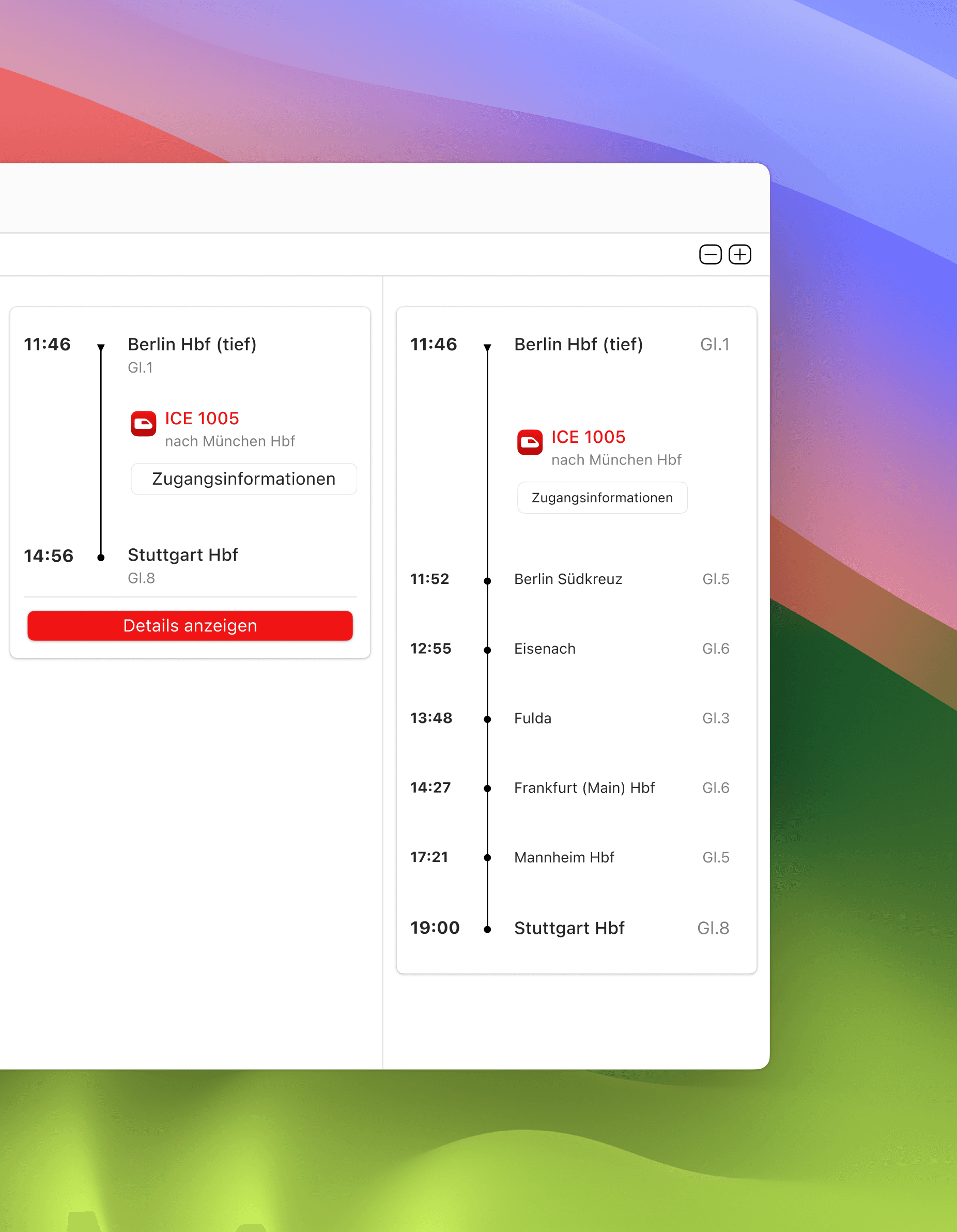 The DB Navigator iOS app as the starting point. Trip overview and connection search form the core use cases selected for the macOS adaptation.